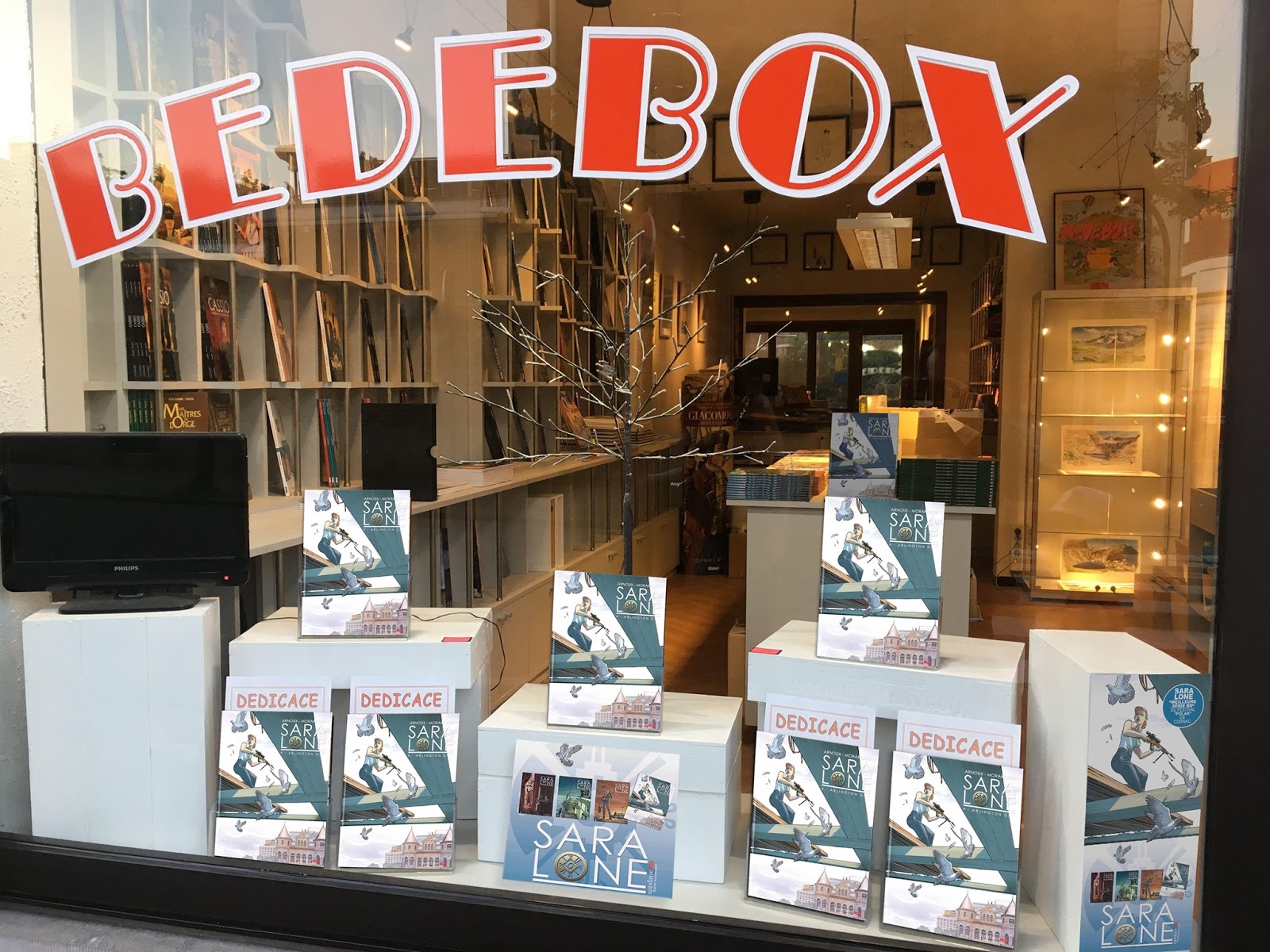 Fred est le libraire qui à ce jour à le plus vendu d'albums de Sara Lone et on va faire pareil avec le tome 4, il en a commandé 50, aura des premiers tomes aussi, bref... pour des dédicaces de ma part, rehaussées d'aquarelle.